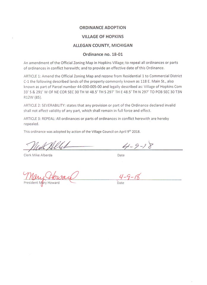 The Village of Hopkins has made several updates to its Zoning Ordinances.